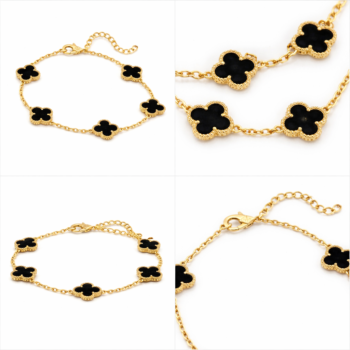 YouGorgeous™ 18K Gold Plated Anti-Tarnish Black Clover Bracelet – 316L Stainless Steel Link Chain with Glossy Floral Charms – Waterproof & Hypoallergenic | Birthday & Anniversary Gift for Women (Small Clover)