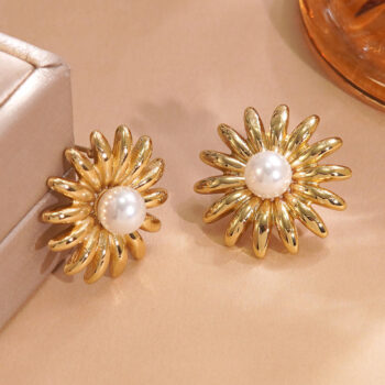 YouGorgeous™ Essential Trio Anti-Tarnish Earring Set – 18K Gold Plated Waterproof Earrings – Floral, Pearl & Gold Stud Set – Hypoallergenic & Nickel-Free Gift for Her