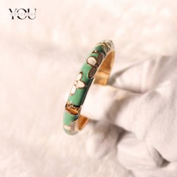 You Gorgeous Anti-Tarnish Mint Green Bangle | White Floral Enamel Bracelet | Waterproof Gold Plated Jewelry Gift for Women, Spring Style