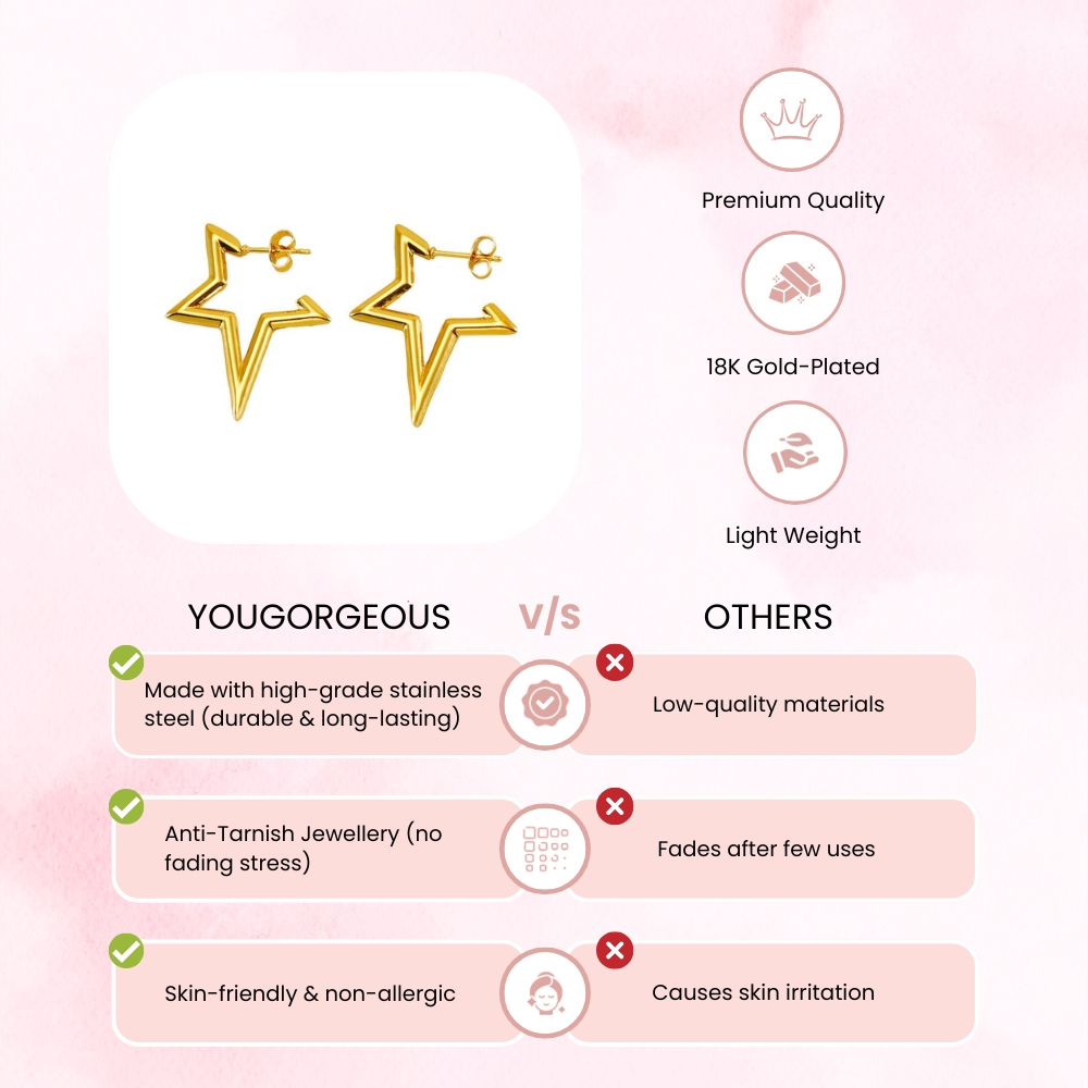 - ⭐ Unique Star Hoop Design – Modern pentagon star shape for a bold yet minimal look