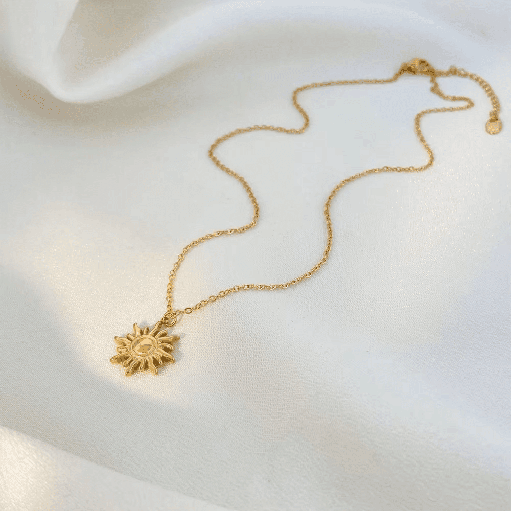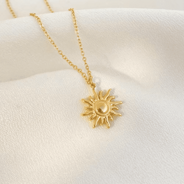 The pendant is luxuriously plated in 18k gold, providing a rich, golden glow that adds a touch of elegance to any outfit. The intricate design of the sun’s rays creates a captivating visual effect, making this necklace a true statement piece.