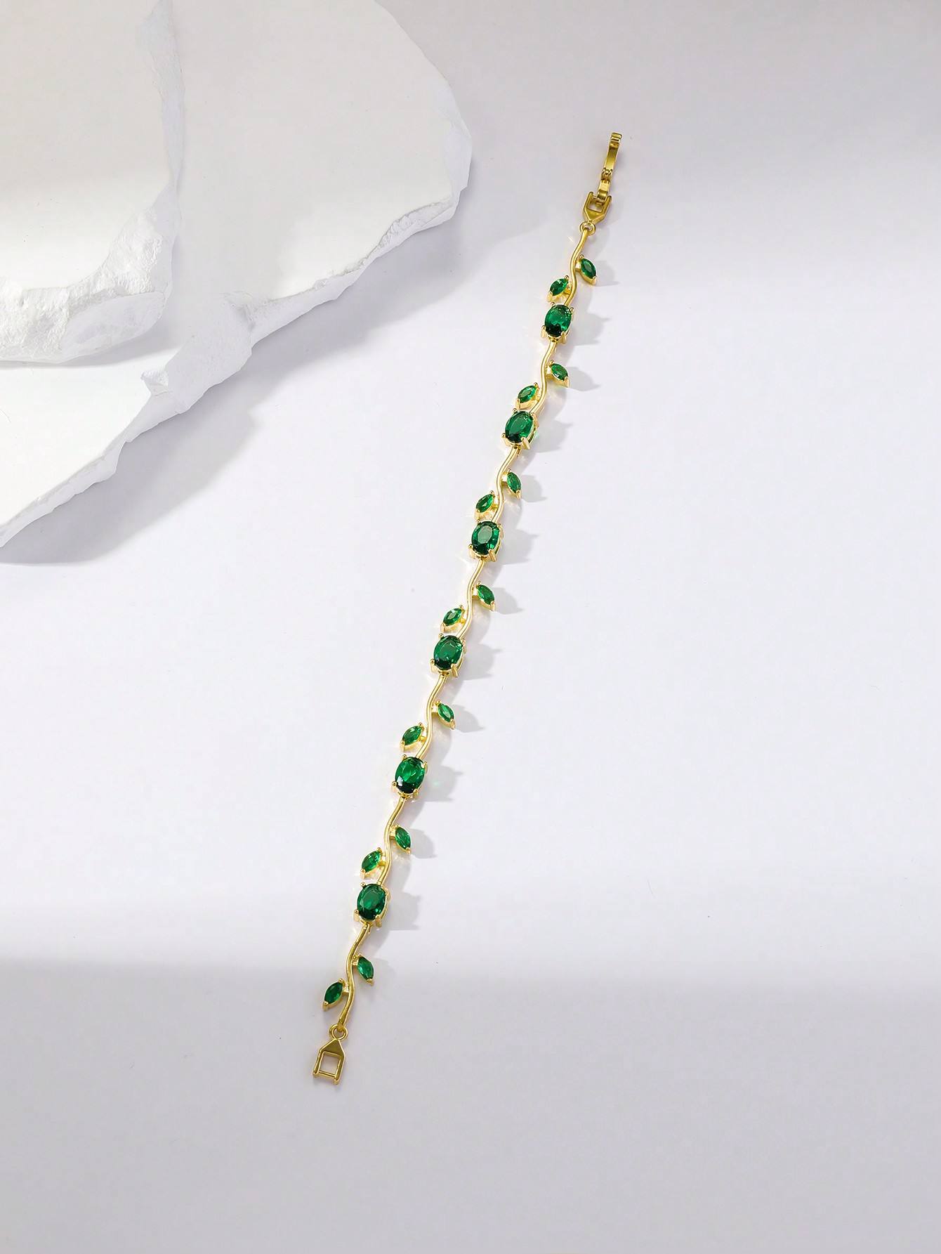 Step into a world of botanical luxury with the YouGorgeous™ Emerald Green Zircon Leaf Bracelet. Inspired by European high-fashion, this delicate piece features a winding golden vine adorned with shimmering marquise-cut emerald green zircons that mimic the lush beauty of forest leaves. Each stone is meticulously set in a high-polish brass frame, creating a continuous flow of sparkle around your wrist.