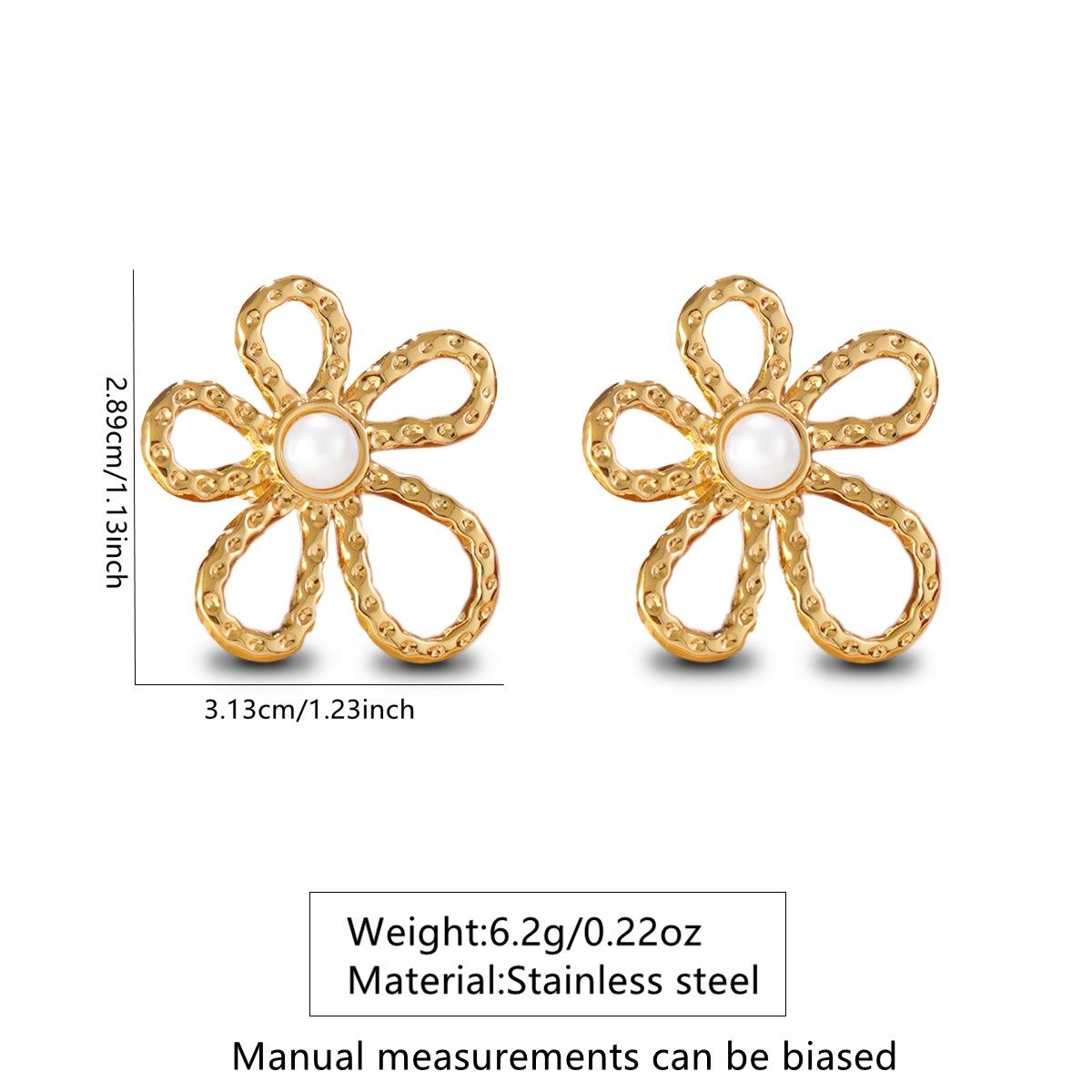 YouGorgeous™ 18K Gold Plated Anti-Tarnish Irregular Floral Stud Earrings – 316L Stainless Steel Hammered Texture Flower Earrings with Pearl Waterproof & Hypoallergenic Premium Jewellery Birthday Anniversary Gift for Women Girls