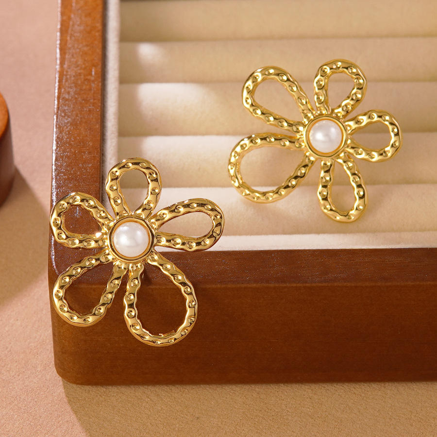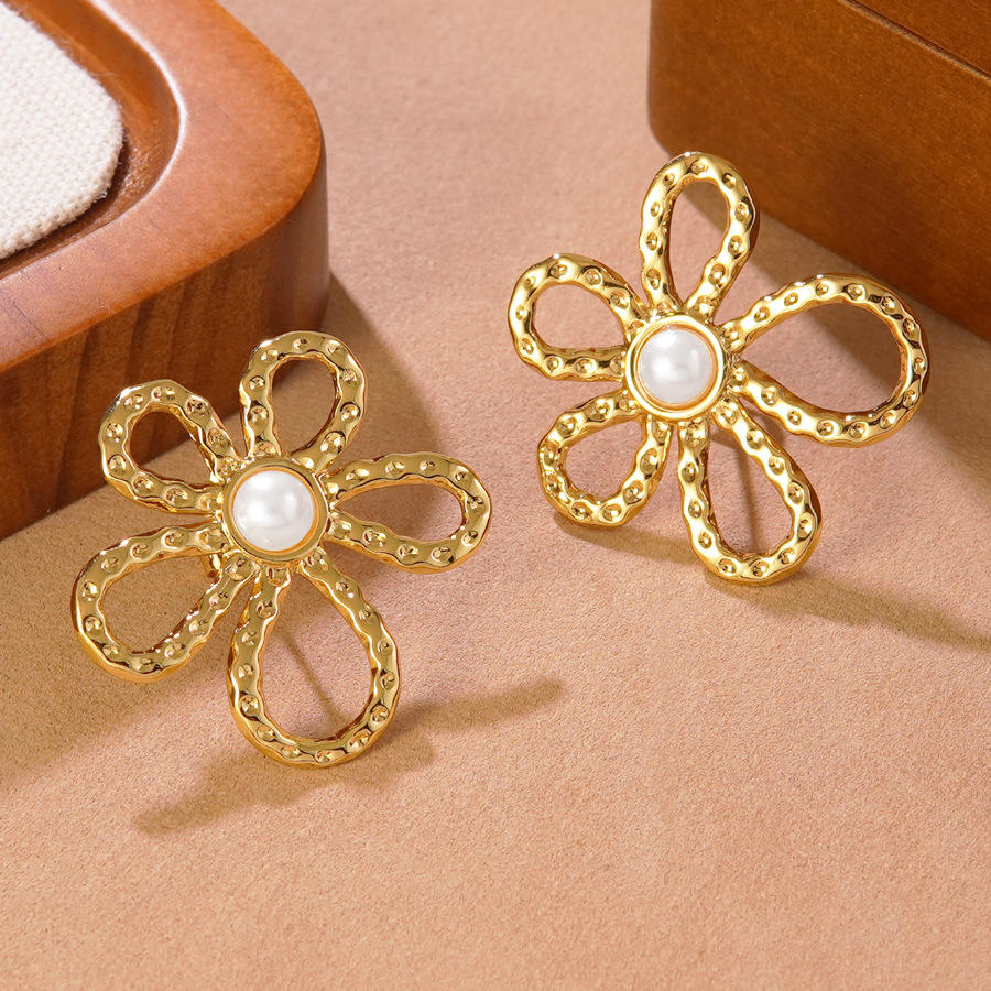Infuse your style with the organic beauty of a golden garden. The YouGorgeous™ Irregular Floral Stud Earrings feature a whimsical, six-petal flower design with a trendy hammered texture that catches the light from every angle. Each bloom is centered with a luminous, high-shine pearl, creating a sophisticated contrast between the rugged “irregular” gold finish and the classic elegance of the pearl.