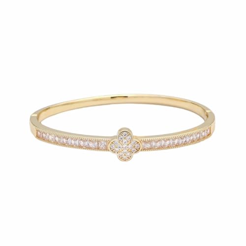 YouGorgeous™ 18K Gold Plated Anti-Tarnish Four Leaf Clover Bangle – 316L Stainless Steel Waterproof & Hypoallergenic Premium Jewellery Birthday Anniversary Gift for Women Girls